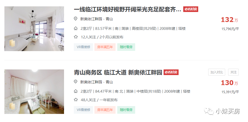 联泰香域水岸是个次新小区,少量几套95平在售,不过只是2房,其余都是130平以上的户型,而依江畔园08年左右的房子,小两房130万左右就可以买到。