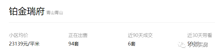 三期大华铂金瑞府,楼龄较新,成交比较火,90天成交了6套,参考均价23139元/平。