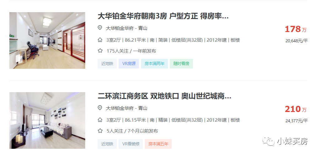 即便如此,经过了一年,房价还是跌了!大华铂金华府去年21425元/平,今年20506元/平。