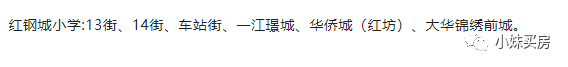 红钢城小学:13街、14街、车站街、一江璟城、华侨城(红坊)、大华锦绣前城。