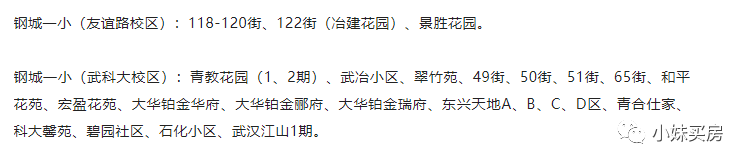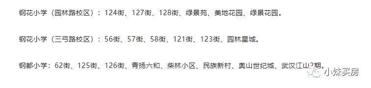 钢都小学:62街、125街、126街、青扬六和、柴林小区、民族新村、奥山世纪城、武汉江山2期。