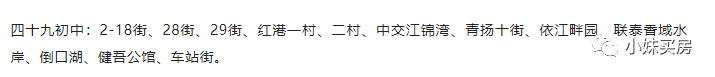 四十九初中:2-18街、28街、29街、红港一村、二村、中交江锦湾、青扬十街、依江畔园、联泰香域水岸、倒口湖、健吾公馆、车站街。
