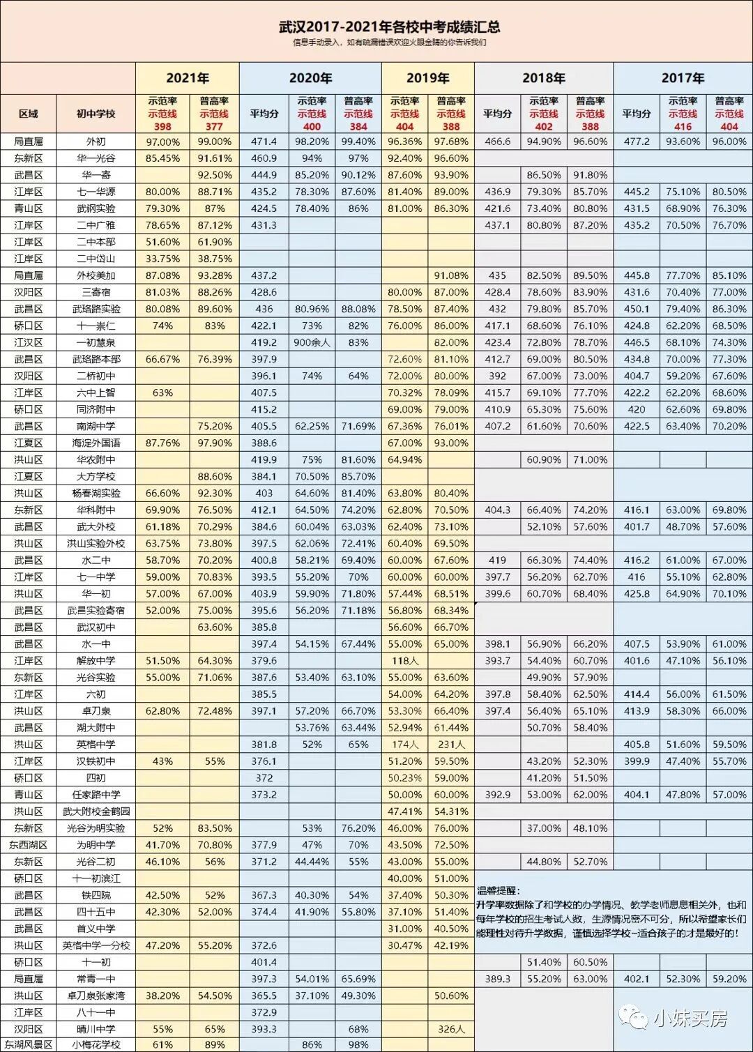 武昌区公办初中第一梯队的武珞路中学对口要求十分严格,仅限武汉小学的学籍和户籍双对口生源;对公招生人数也很少,武珞路中学一个年级只有2个班,不到100人,学位资源比较紧缺;但是升学率高,教育质量还不错,武珞路中学(本部)2021年参加中考人数72人,市示范上线率66.67%,普高上线率76.39%。