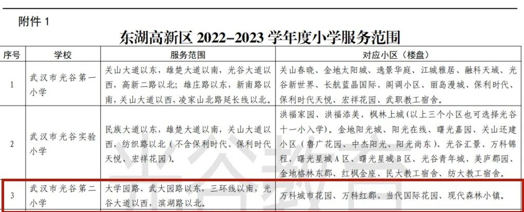 光谷学区格局现状