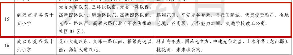 光谷二小、光谷六小、光谷十五小、光谷一小(新竹路及新竹路以南毕业生)和光谷实验小学(新竹路及新竹路以南毕业生)。