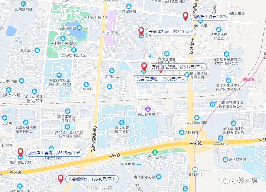 不过该片区的光谷·理想城和长城·坐标城房龄也不算特别老(2013年建),但是价格却友好很多,又靠近关山核心,如果是预算不多,又想考虑名校学区,偏刚需一点的宝爸宝妈倒是也能考虑考虑。
