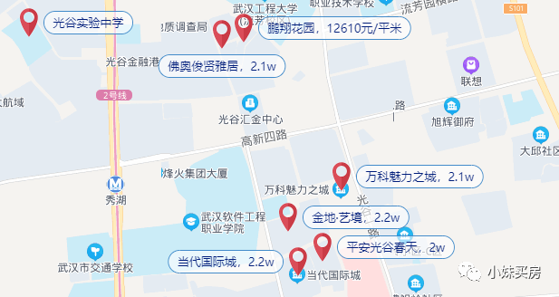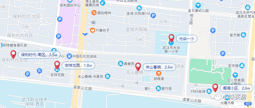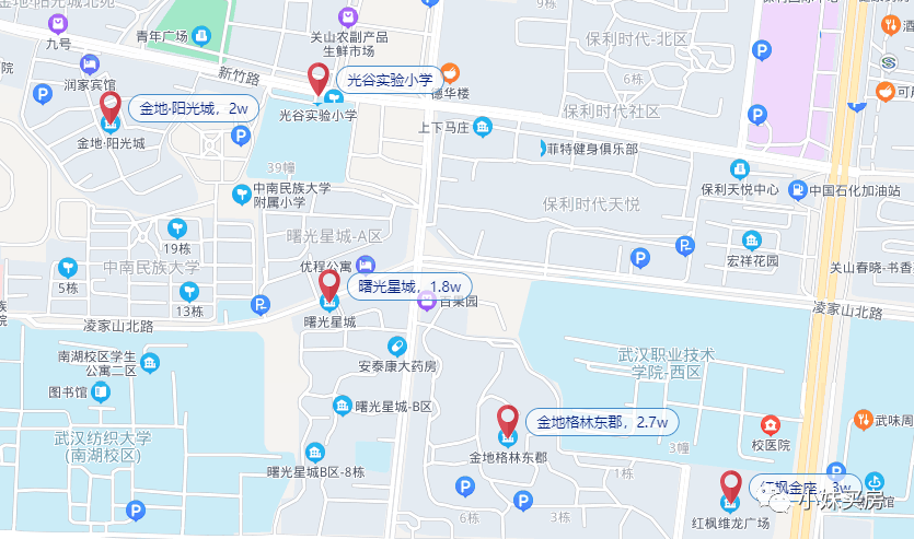 但对口光谷实验的只有新竹路及其延长线以南的小区。按房价来看,其中,最高的是保利时代南区,均价35043元/平,最低的是宏祥花园,仅18737元/平。其余的楼盘房价都不低。