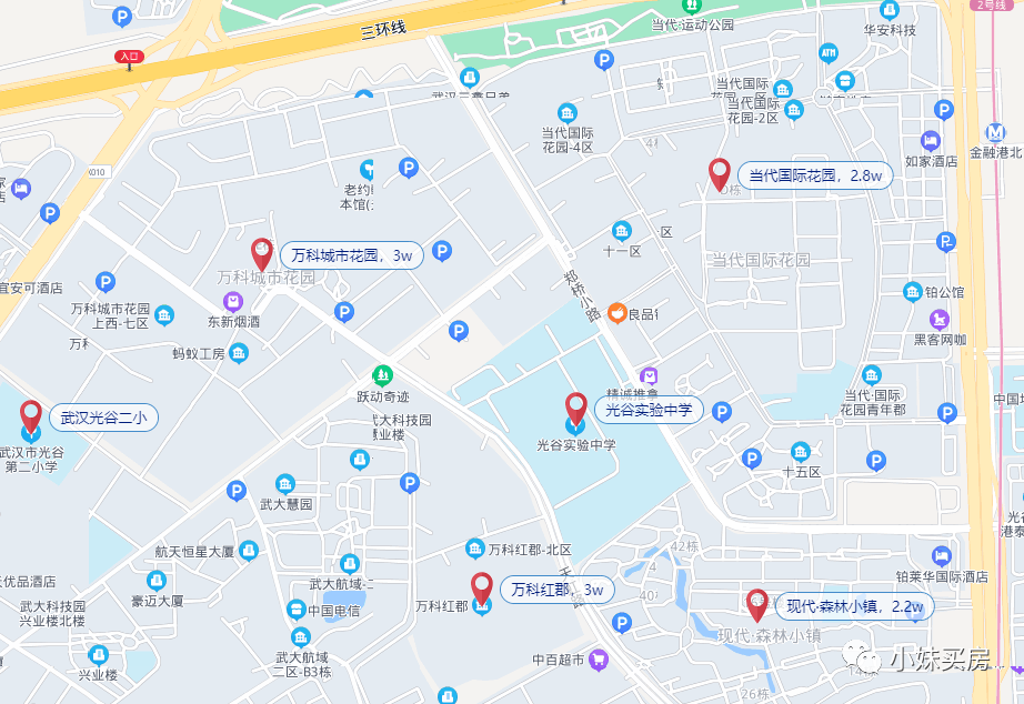 另外,这四个小区都在光谷实验周边,尤其是现代森林小镇和当代国际花园,还离地铁口比较近。