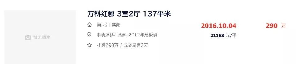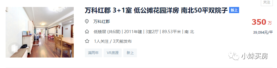 万科红郡有一套小户型挂牌房源,单价已经超过3.9w一平。对比该小区2016年同类房源成交数据,近6年时间每平单价上涨了1.8w元。