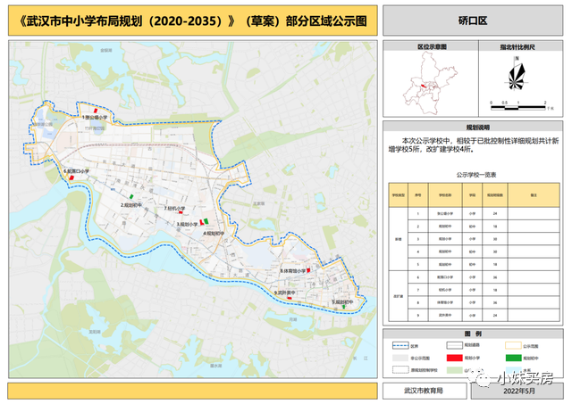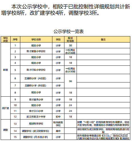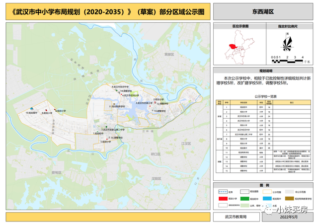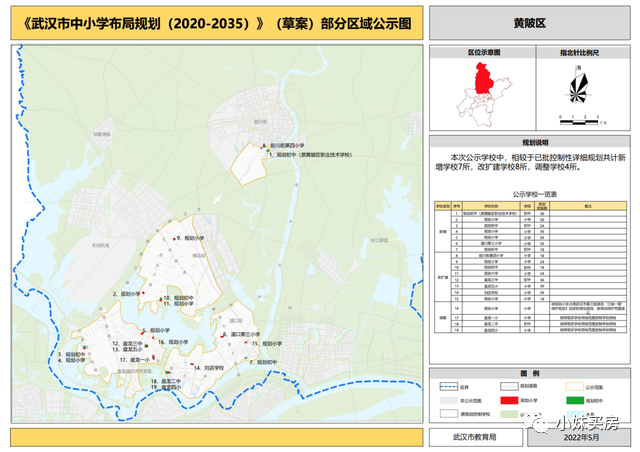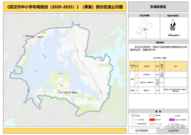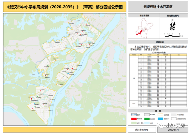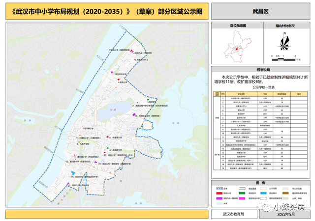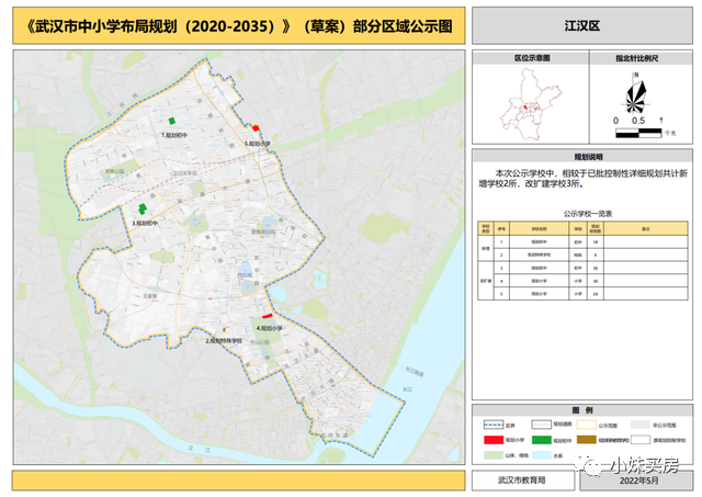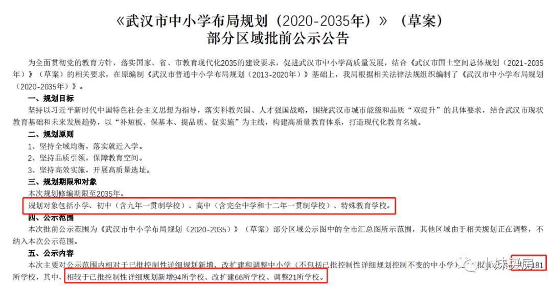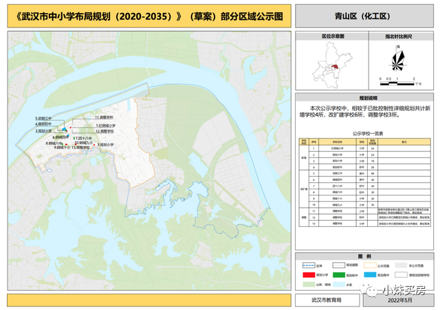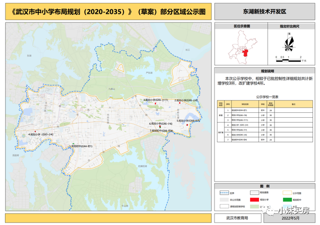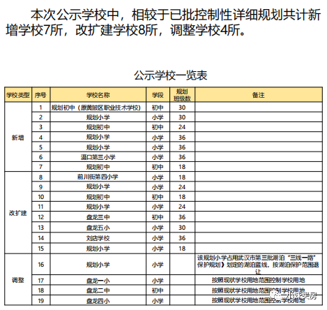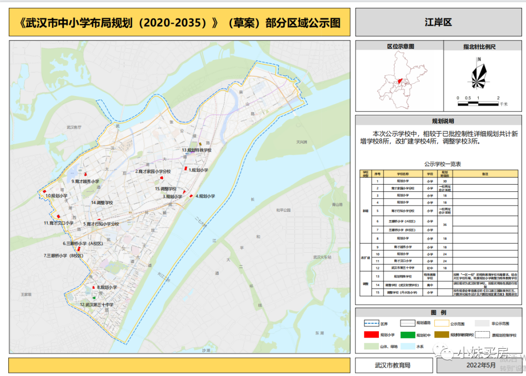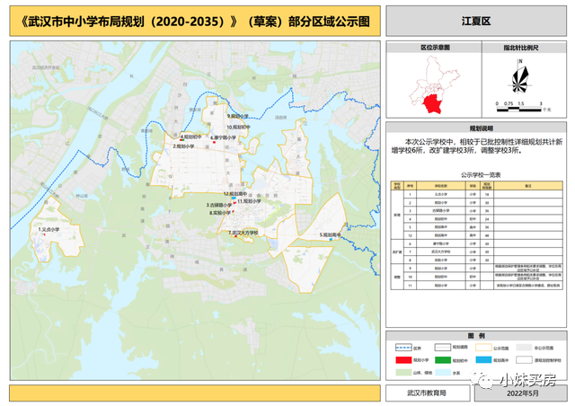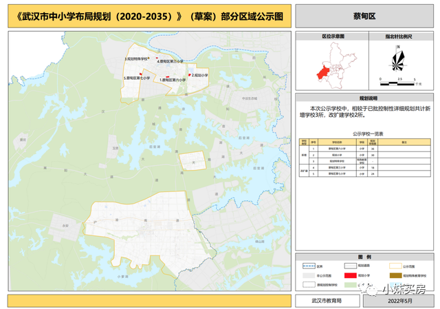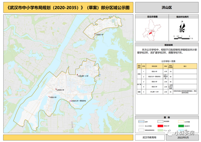 另外,5月22日,武汉市教育局发布了《武汉市中小学布局规划(2020—2035年)》(草案)部分区域批前公示公告。
