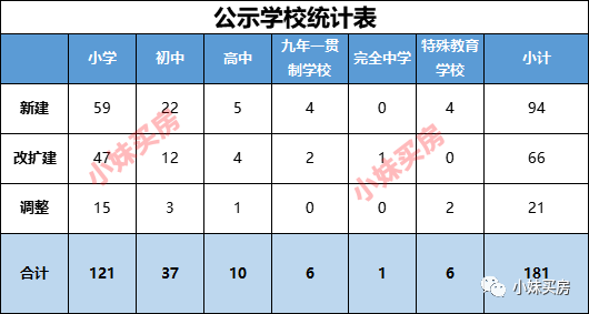 根据公告,至2035年,武汉市将至少新增、改扩建和调整中小学(不包括已批控制性详细规划控制不变的中小学)181所学校,其中,涉及新增94所学校、改扩建66所学校、调整21所学校。