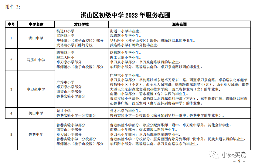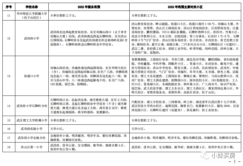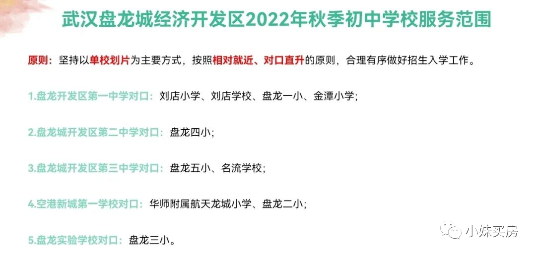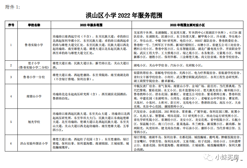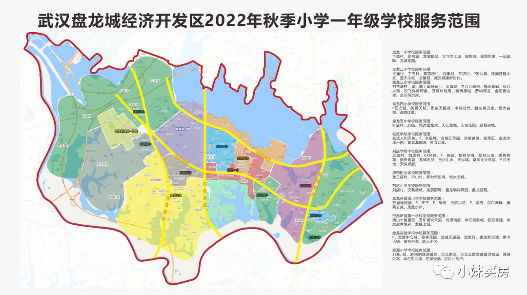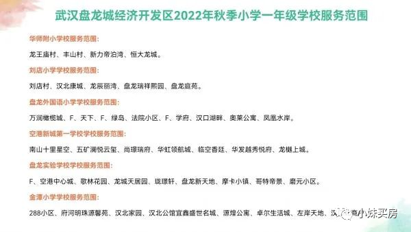 1、目前已公布的洪山、黄陂盘龙城、蔡甸城关、武昌、江夏纸坊整体变化不大,洪山、盘龙城部分学校对口小区微调。