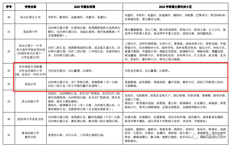 2、洪山区学校划片范围略有变化,变化的主要是因为新增3所小学,分别为南湖的洪山六小和白沙洲的致远小学(光霞村小学)、万科金色城市一分校。