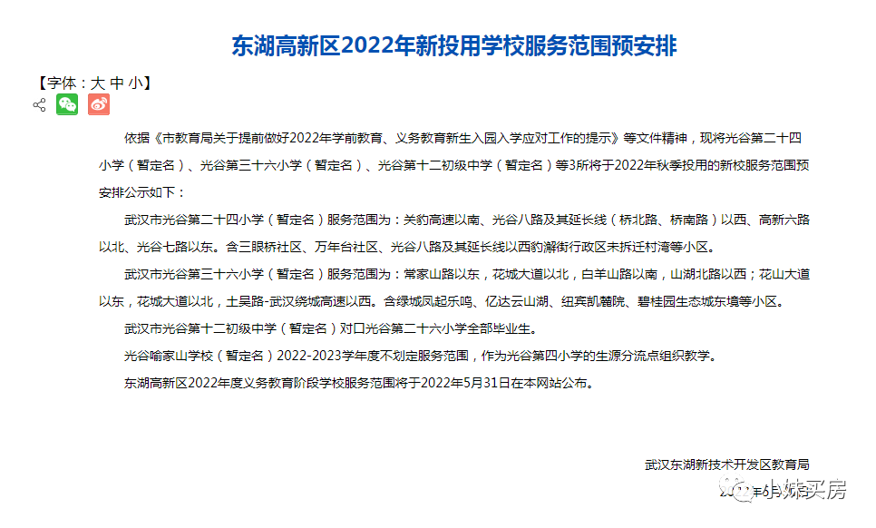 3、光谷新增2所小学和1所初中对口范围已确定。