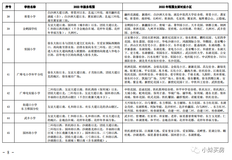 近日,武汉洪山、东湖高新、黄陂、蔡甸、武昌、江夏部分板块发布了2022年义务教育阶段学校服务范围(俗称学校划片),另外光谷、汉阳、蔡甸大集今年9月还将新增多所中小学开学。你家归属哪个学校,快来一起看看吧!