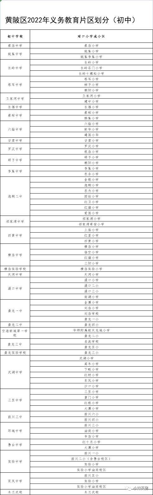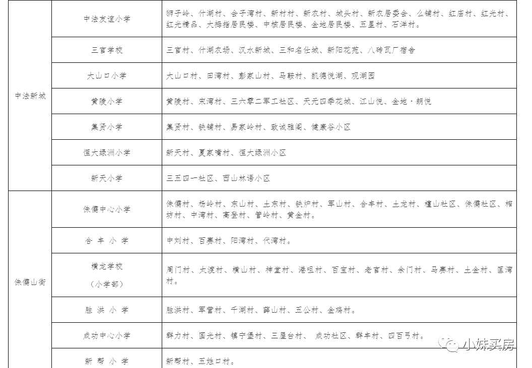 2、汉南片区划片对口情况