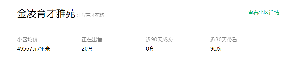 均价约4.4万/平,较1年前单价涨了近1万!43㎡左右的一室一厅,特别适合有学位和陪读需求的家庭,最高挂牌破5万的,一套起码要170万了,因为价格大涨,近期二手房成交也不活跃,90天0成交。