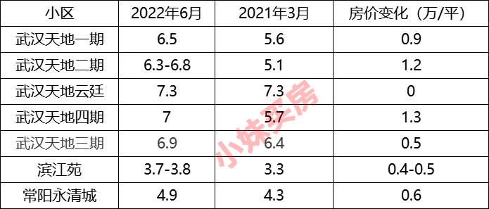 小妹汇总了一下,这一年来,永清片对口长春街小学+七一中学的小区房价变化,发现基本都上涨了,最高竟然涨了1.3万/平!武汉天地YYDS!