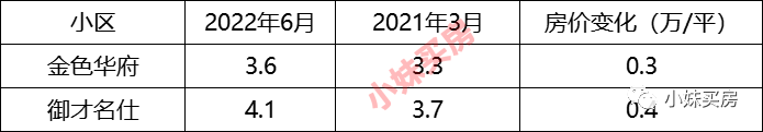 2021年3.3万/平-2022年6月3.6万/平,金色华府一年上涨3000元/平。