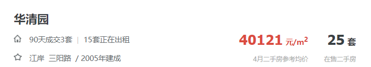 目前,华清园小区二手房均价约4万/平,在售房源有25套,最高挂牌单价在4.6万/平。