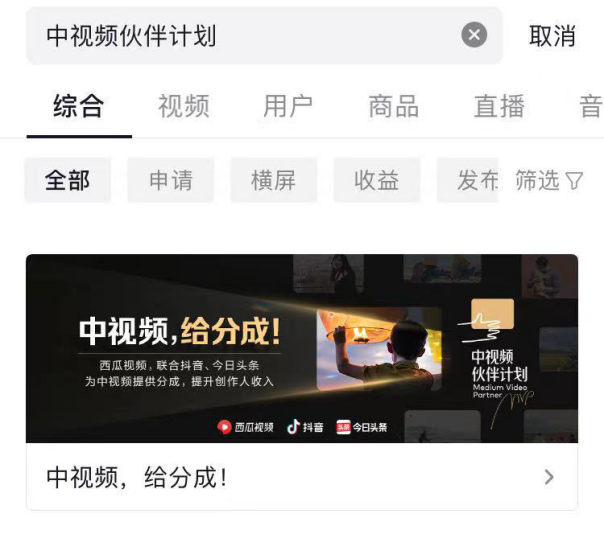 抖音上去搜“中视频伙伴计划”,下面的卡片就是对应的入驻地址。