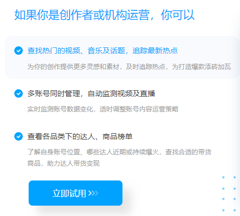 首次使用可以尝试用下试用版,能寻找贴近视频话题的热点作品,为你积累创作灵感。