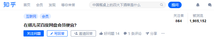 像这条问题,从用户的角度出发,就是带超强需求性的话题,提到怎么买百度会员便宜。