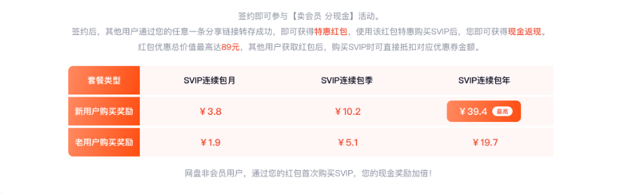 新用户首购包月vip能得到双倍佣金,要是之前已有网盘的老用户,一单是1.9元。