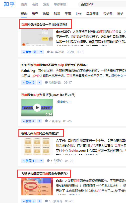 具体找精准问题的思路是这样,在知乎里搜“百度SVIP”即可。