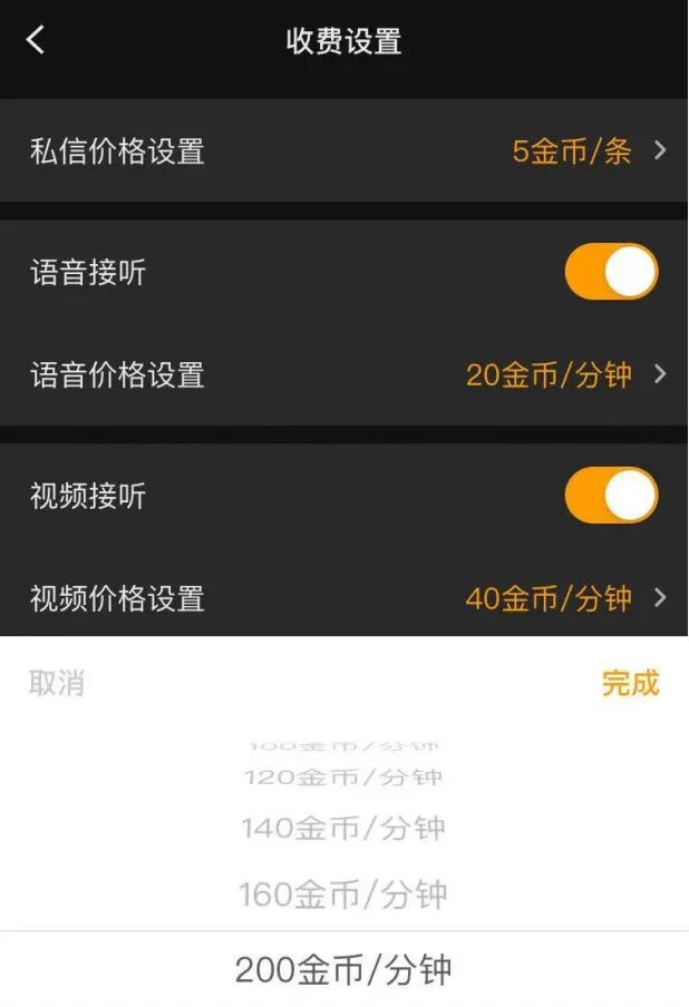 视频聊天一分钟最高可设置200金币,也就是人民币13块多一点,意思是别人跟你聊一分钟就是这个报酬,是不是比上班舒服多了。