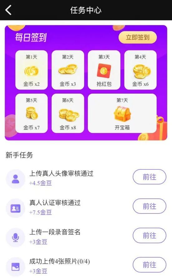 刚开始注册了账号,传了头像,实名身份,就把里面的任务完成。
