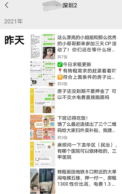 这个本地号朋友圈推广是租房,相亲信息为主,据说加过几百个群,每个号5000好友。