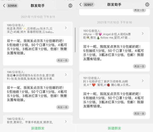当然,直接一点群发也可以,就是单独分享朋友圈有羊毛,把自己微信上的人全部通知到。