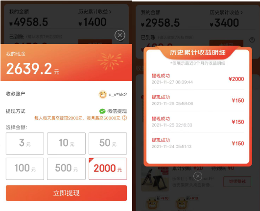 实际上,单个1分钱用户下单,意味着碰到这种好事会习惯性的二次分享,有朋友单日奖励超5000块。