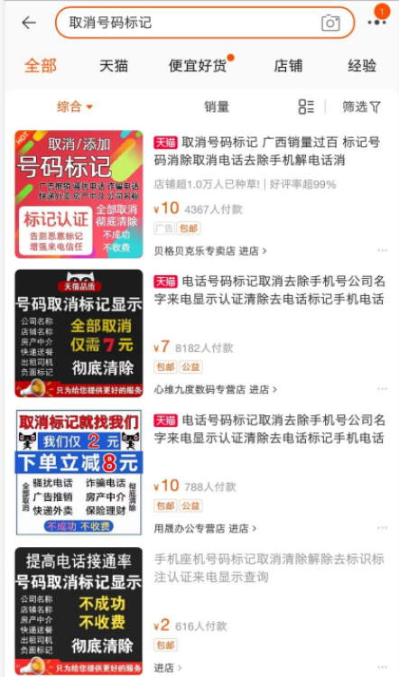 不难发现,推这种商品的店还真不少,他们的业务范围内除了能取消电话标签,还能自动申请标签,给钱没什么办不到的哈。