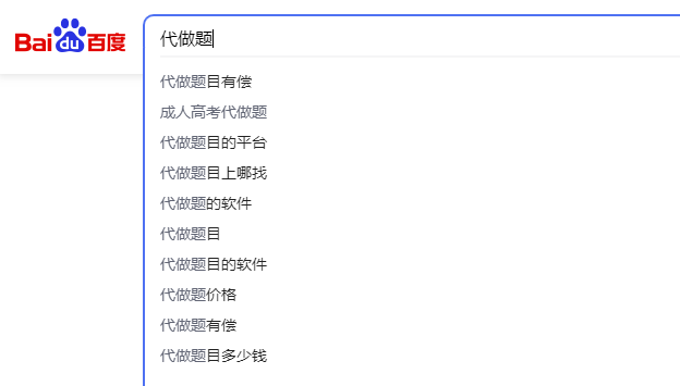当我去搜索“代做题”的时候,下拉就展现了相关需求词。