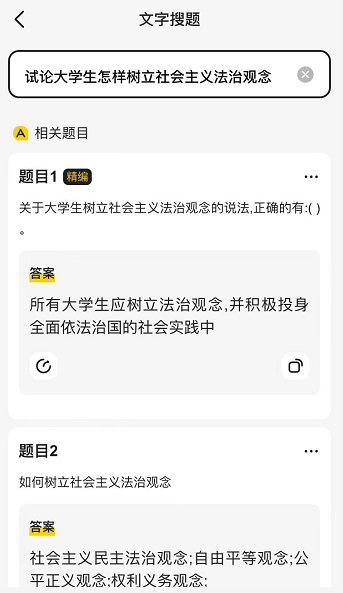 文字搜题:就是把题目的标题复制进去,再搜索出相关答案。