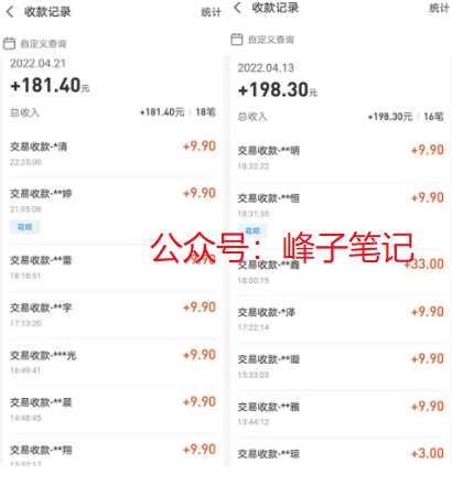 这是日常的收款图,别看不起9.9,其实流量起来了,量上去,收入自然也会上去,钱直接到我们的口袋里,省的从平台去提现。
