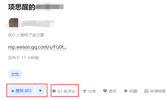 底下还有800+人在点赞,评论数达到80个以上,其实就是一条引到公众号内容链接的方式。