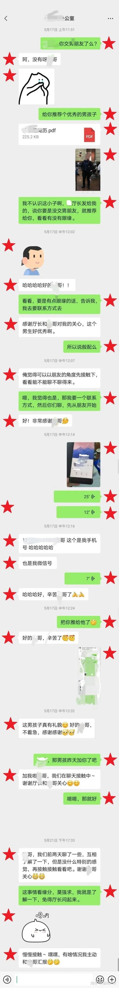 这个女孩子怎么样做的呢?可谓很好的应对,附图如下(为了不泄露隐私,头像做了处理的,五角星是我P上去的。