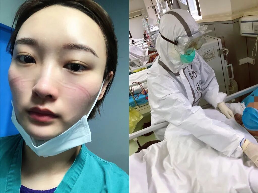 视频里的她眼睛红红的,脸上还带着口罩的压痕。