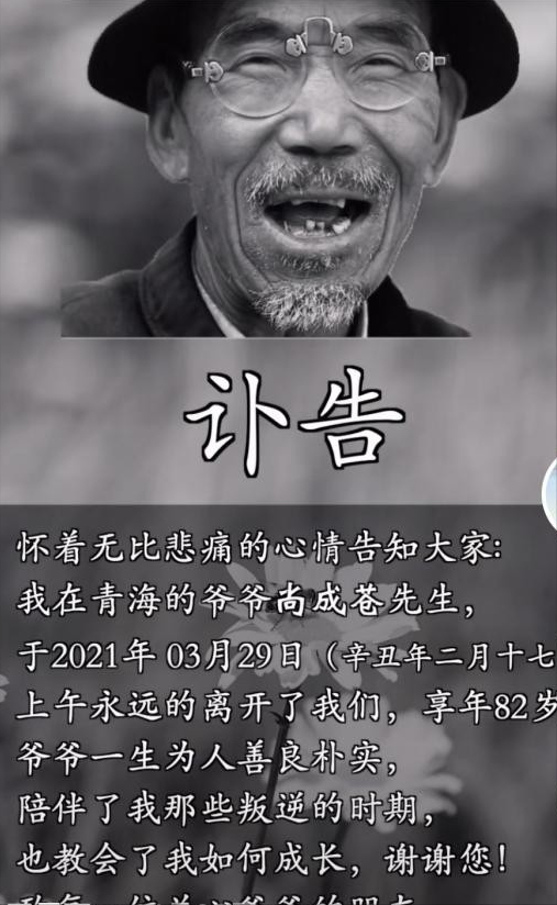 但2021年3月29日那天,爷爷还是离开了。王晨正得知后,连夜从西安飞往西宁,冒着大雪为爷爷千里奔丧。