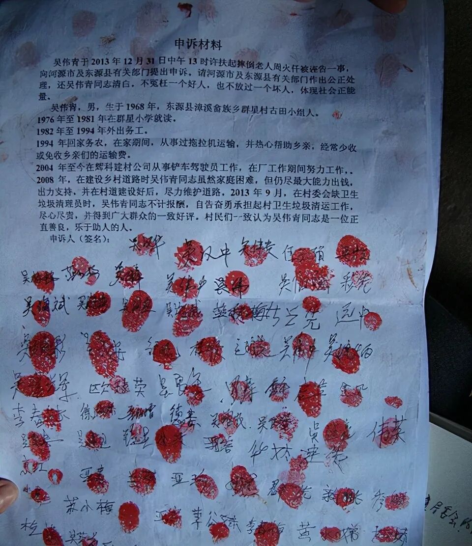 吴伟青的村民们得知此事,联名写了一份申诉书,要求还善良老实的吴伟青一个清白,惩罚真正的坏人。