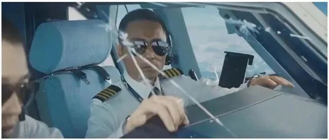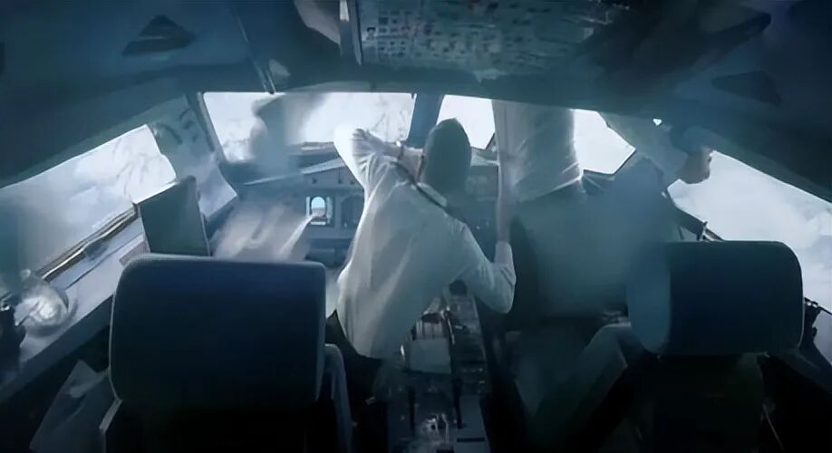 话音还未落,“砰”的一声巨响,那块玻璃突然爆裂脱落被吸出窗外。飞机由于瞬间失压开始剧烈抖动。徐瑞辰被巨大的风力和失压直接“吸”出了驾驶舱外。幸好他系了安全带,拉着他半挂在机舱窗外。