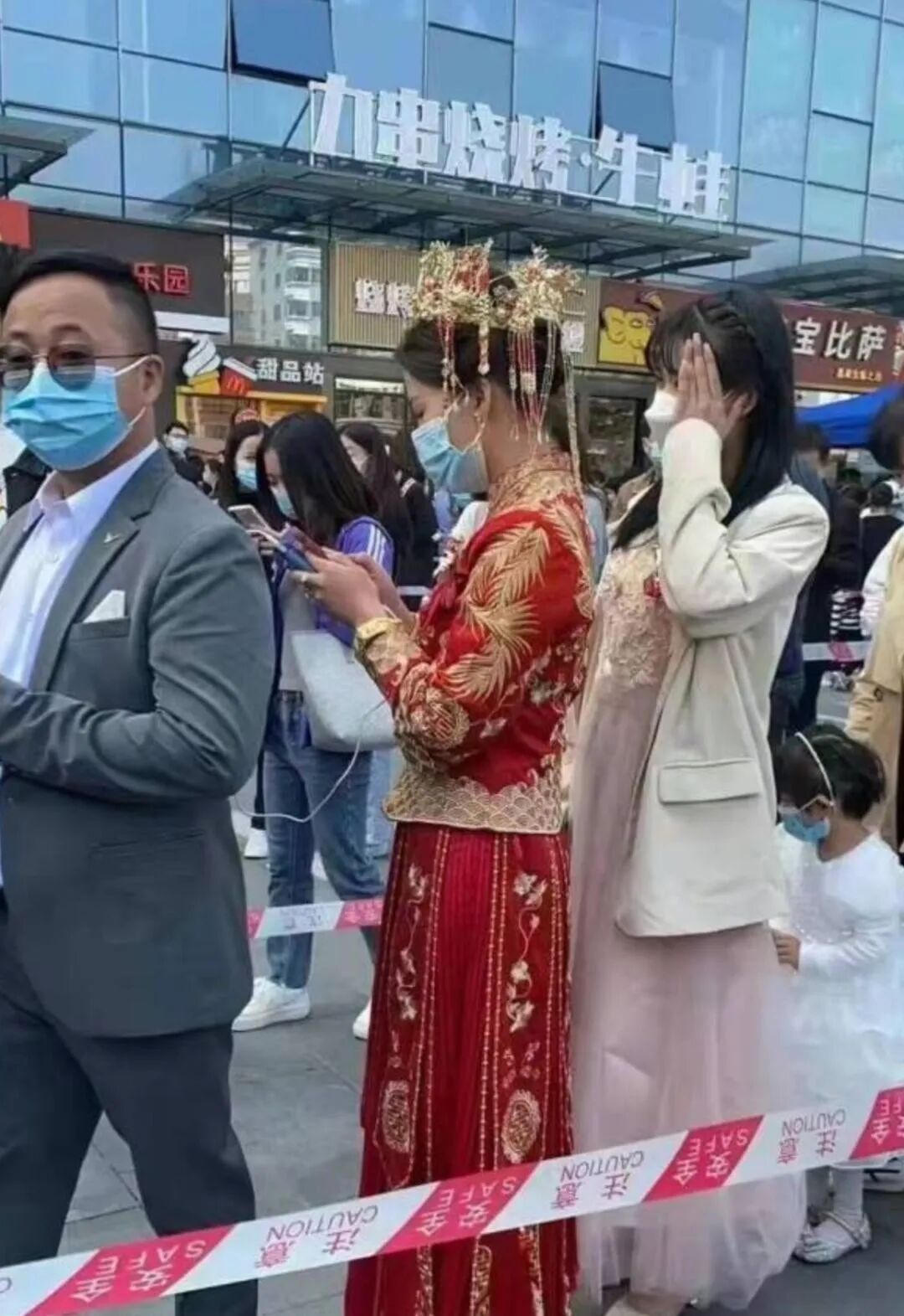 就像之前在网上疯狂流传的一段视频那样,新娘当天结婚,正好赶上全员核酸,新娘不添乱,核酸人员为其开绿色通道不耽误。