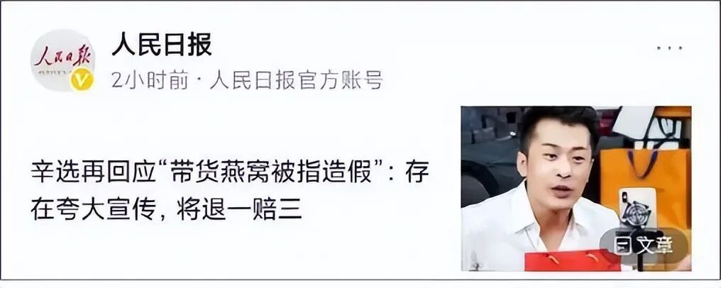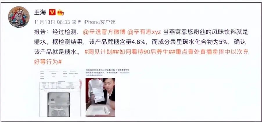 辛巴狂言一出,惊动职业打假人王海,一份份真实有效的检测报告摆在眼前,竟堵不上他在直播间乱说的嘴,反而引来更多媒体的关注、抨击,就连人民日报也点名此事。
