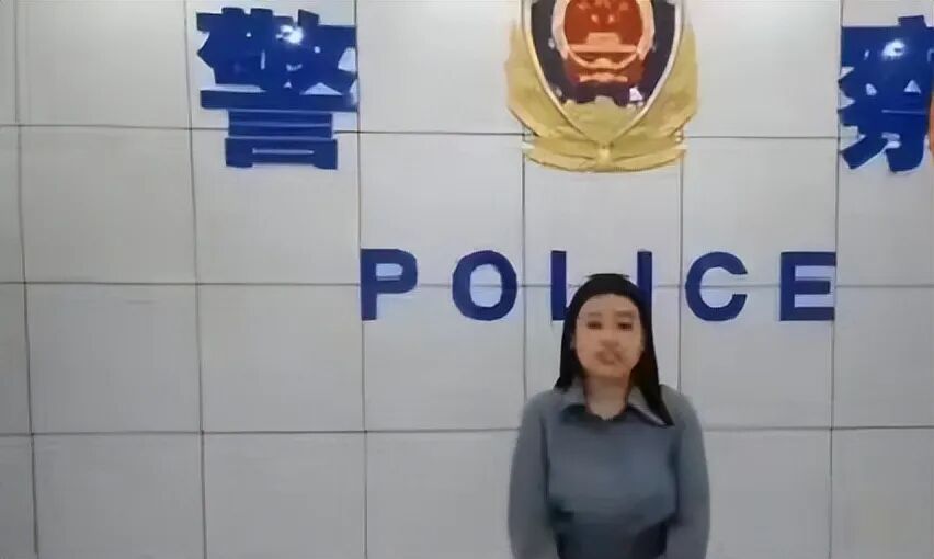 在派出所中完全没有了当时的嚣张模样,在威严的警徽下发布视频,向大家道歉。