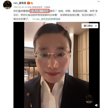 满屏皆是明目张胆的暧昧之意,就是这样的一个视频,让徐勤根涨粉几十万,这样奇葩的一个“高质量男”,竟然火了。