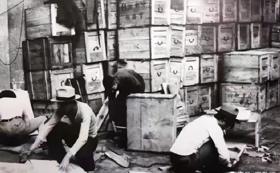 郭家惠和包装组的工人赶紧往仓库跑,看到之前码放整齐装黄金的木箱,最上边的那个箱子已经被搬到了地上,箱子上的铁丝被弄断,箱盖木板被撬开3寸宽,包金子的绿色包装纸和黄色稻壳散落一地。