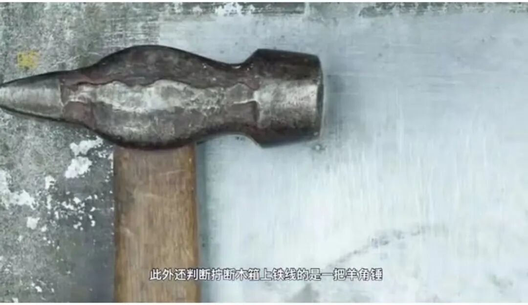 二是,从木箱铁丝被拧断等情况,判断作案工具是铁把的羊角锤。